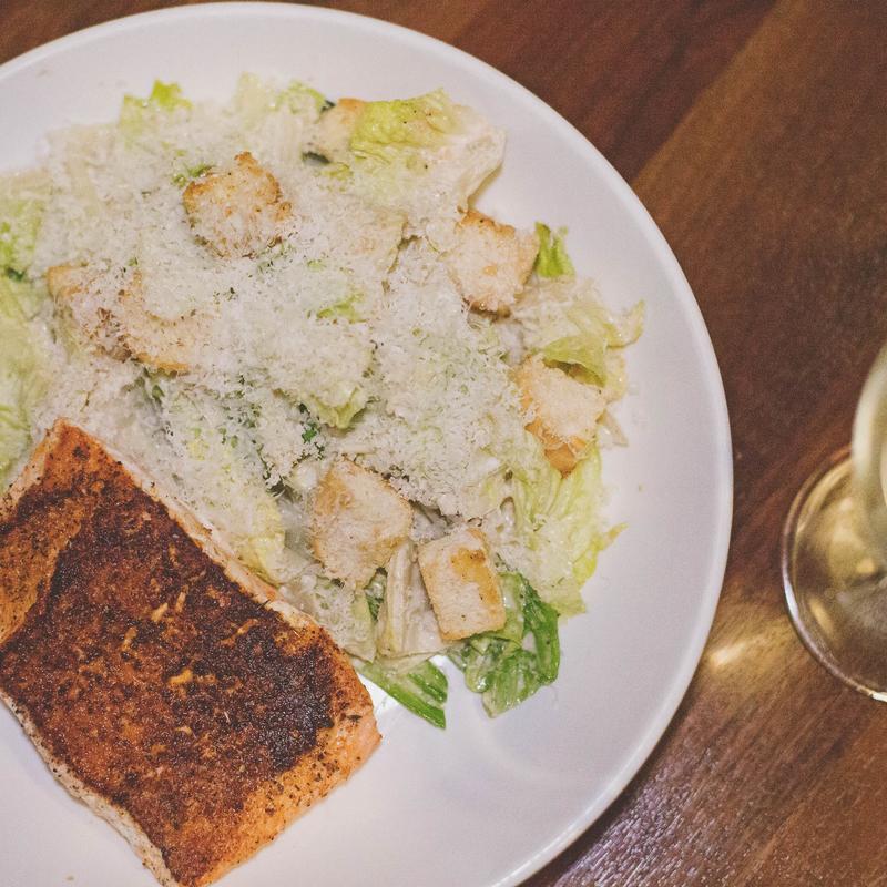 seared salmon topped with house made chimichurri and served with broccolini