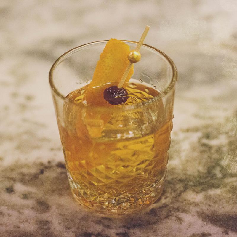 evan williams 1783 / demerara/ ango marschino cherry / orange peel